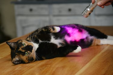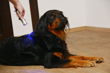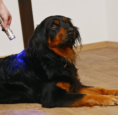 Die Farblichttherapie ist eine alternative Behandlungsmethode, bei der bestimmte Farben verwendet werden, um das körperliche und emotionale Wohlbefinden des Tieres zu verbessern. Sie basiert auf der Annahme, dass Farben eine energetische Wirkung auf den Körper haben und bestimmte Farben bestimmte Reaktionen im Körper auslösen können. Dafür wird LED-Licht gezielt auf den Körper oder bestimmte Körperbereiche projiziert. Jede Farbe wird mit bestimmten Eigenschaften und Wirkungen in Verbindung gebracht. Welche Farbe benötigt wird, kann in unterschiedlichen Herangehensweisen ausgewählt werden.